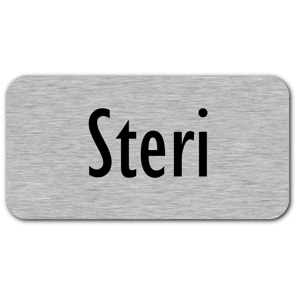 Rundeckenschild Typ „Berlin“ aus geschliffenem Edelstahl.