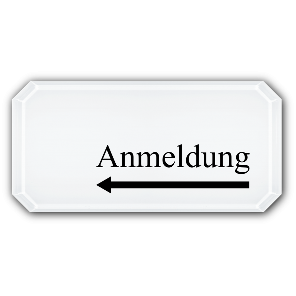 Achteckschild Typ „Düsseldorf“ mit facettierten Kanten, mehrfach im Qualitäts-Digitaldruck hinterdruckt und zum Schutz der Farbschicht rückseitig mit einer 1mm starken weißen Kunststoffplatte deckungsgleich verschweißt.