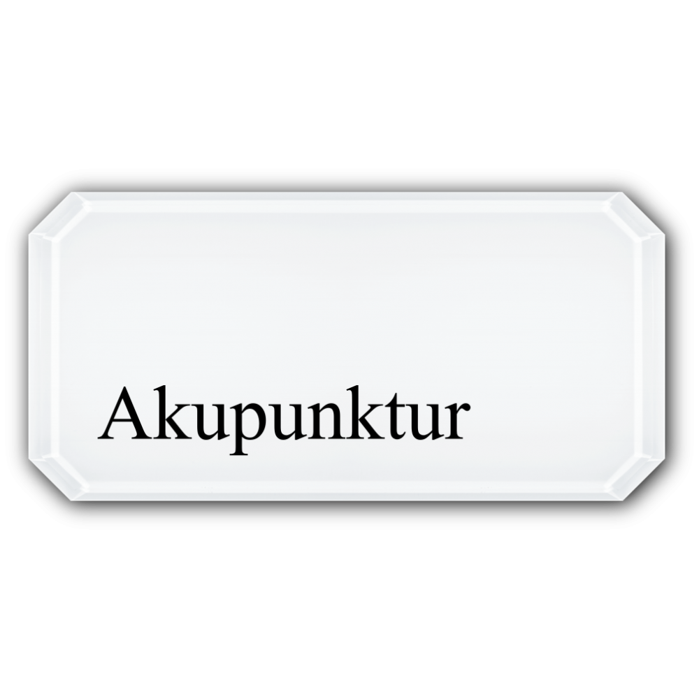 Achteckschild Typ „Düsseldorf“ mit facettierten Kanten, mehrfach im Qualitäts-Digitaldruck hinterdruckt und zum Schutz der Farbschicht rückseitig mit einer 1mm starken weißen Kunststoffplatte deckungsgleich verschweißt.