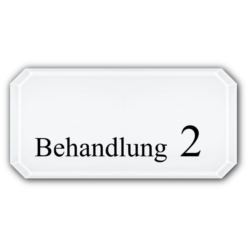 Achteckschild Typ „Düsseldorf“ mit facettierten Kanten, mehrfach im Qualitäts-Digitaldruck hinterdruckt und zum Schutz der Farbschicht rückseitig mit einer 1mm starken weißen Kunststoffplatte deckungsgleich verschweißt.