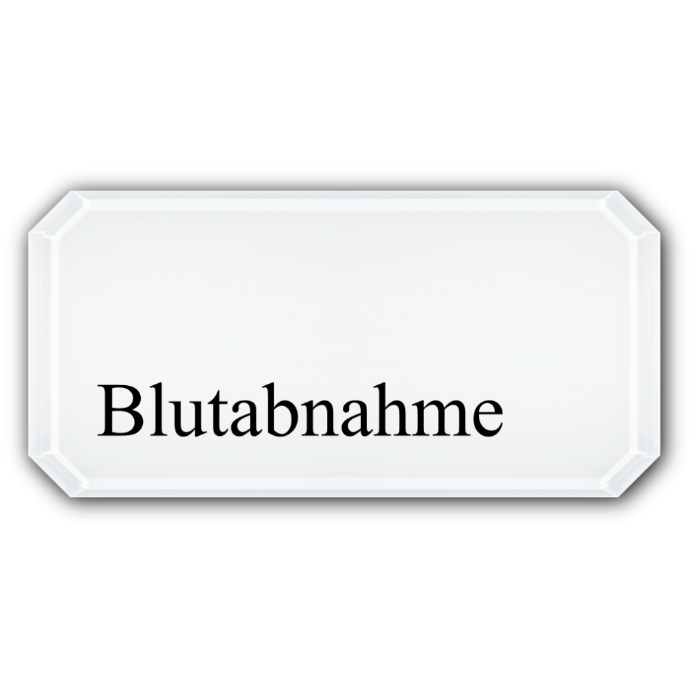 Achteckschild Typ „Düsseldorf“ mit facettierten Kanten, mehrfach im Qualitäts-Digitaldruck hinterdruckt und zum Schutz der Farbschicht rückseitig mit einer 1mm starken weißen Kunststoffplatte deckungsgleich verschweißt.