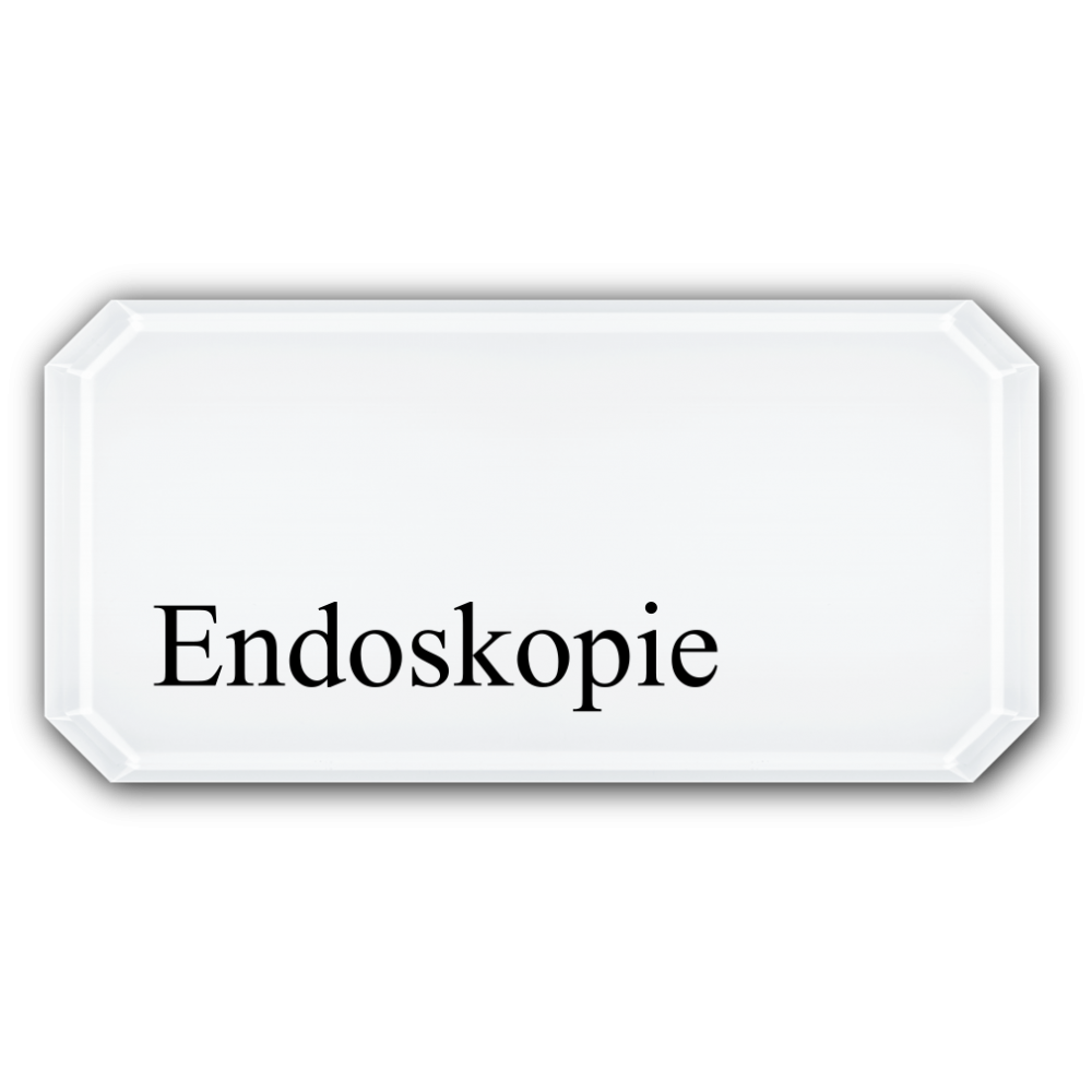 Achteckschild Typ „Düsseldorf“ mit facettierten Kanten, mehrfach im Qualitäts-Digitaldruck hinterdruckt und zum Schutz der Farbschicht rückseitig mit einer 1mm starken weißen Kunststoffplatte deckungsgleich verschweißt.