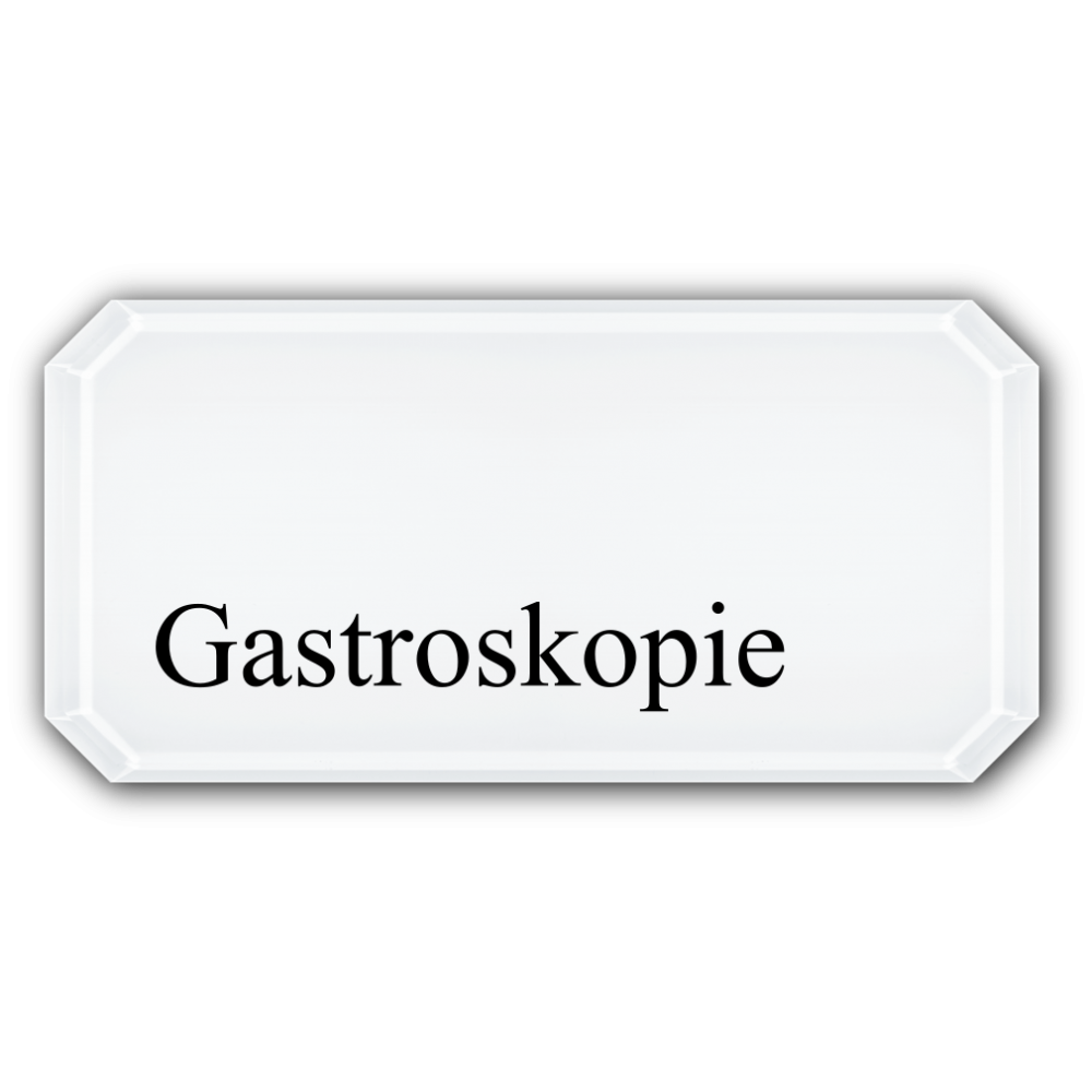 Achteckschild Typ „Düsseldorf“ mit facettierten Kanten, mehrfach im Qualitäts-Digitaldruck hinterdruckt und zum Schutz der Farbschicht rückseitig mit einer 1mm starken weißen Kunststoffplatte deckungsgleich verschweißt.
