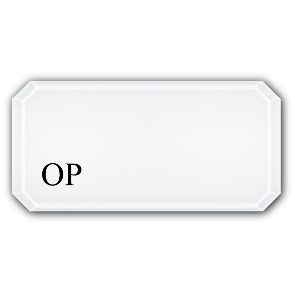 Achteckschild Typ „Düsseldorf“ mit facettierten Kanten, mehrfach im Qualitäts-Digitaldruck hinterdruckt und zum Schutz der Farbschicht rückseitig mit einer 1mm starken weißen Kunststoffplatte deckungsgleich verschweißt.