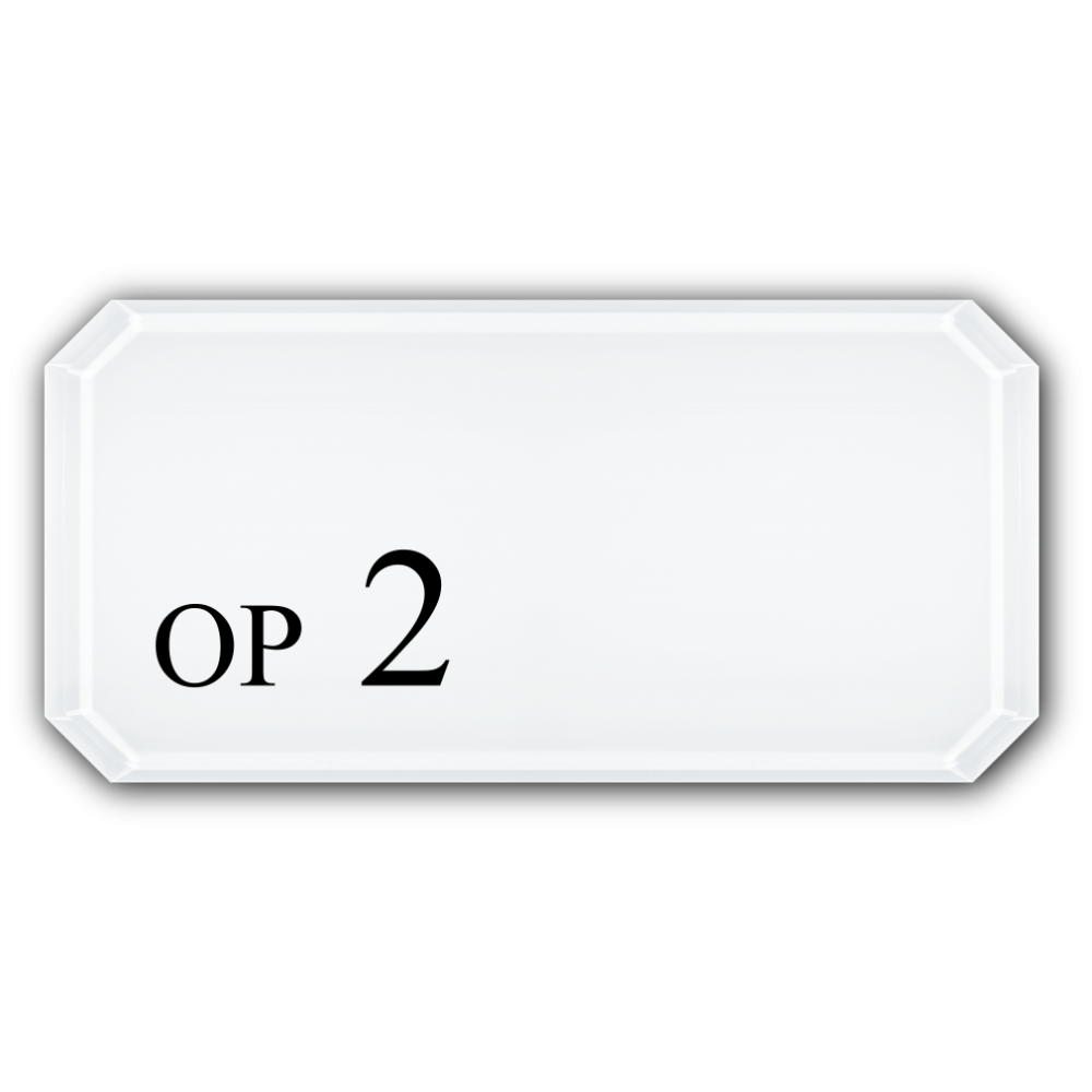 Achteckschild Typ „Düsseldorf“ mit facettierten Kanten, mehrfach im Qualitäts-Digitaldruck hinterdruckt und zum Schutz der Farbschicht rückseitig mit einer 1mm starken weißen Kunststoffplatte deckungsgleich verschweißt.