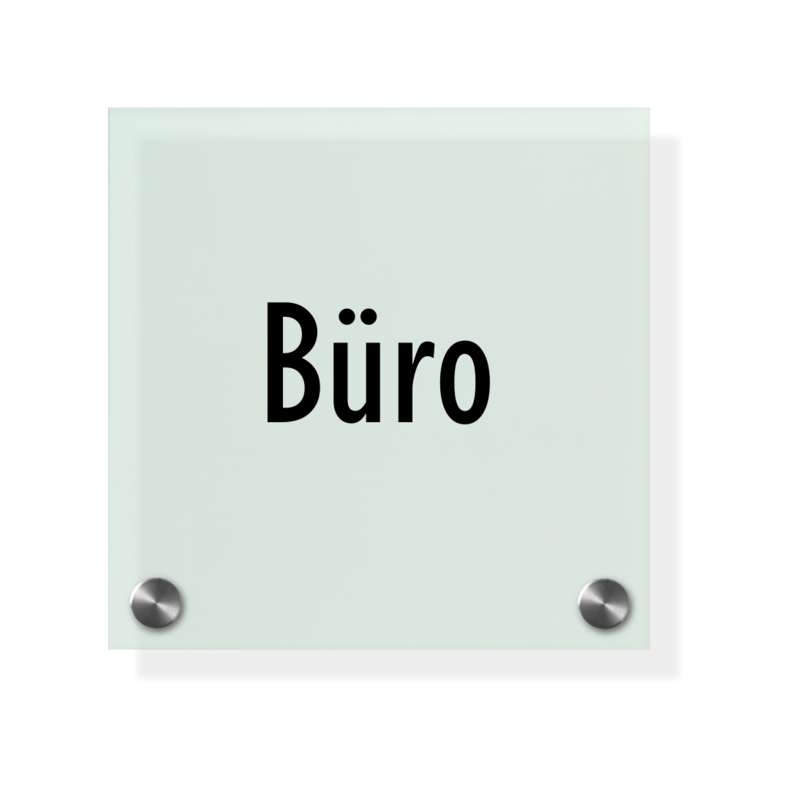 Innenschild Typ „Münster“ aus satiniertem und semitransparentem Plexiglas®. Die Schilder werden in einem Abstand zum Hintergrund montiert (ca. 2 cm). Für den passenden Abstand sorgen die beiden Abstandhalter automatisch. Die Abstandhalter sind im Preis inklusive und werden mit dem Schild mitgeliefert.
