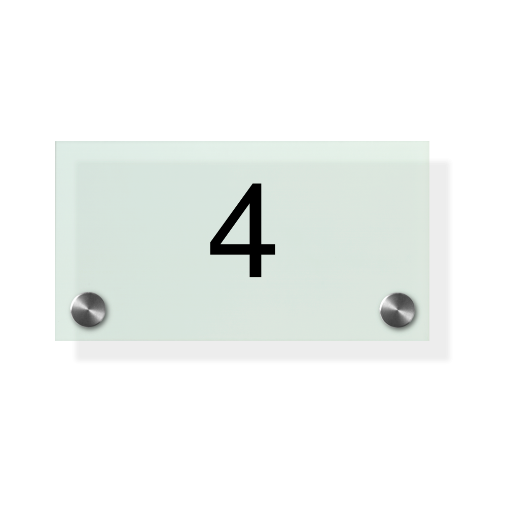 Innenschild Typ „Münster“ aus satiniertem und semitransparentem Plexiglas®. Die Schilder werden in einem Abstand zum Hintergrund montiert (ca. 2 cm). Für den passenden Abstand sorgen die beiden Abstandhalter automatisch. Die Abstandhalter sind im Preis inklusive und werden mit dem Schild mitgeliefert.