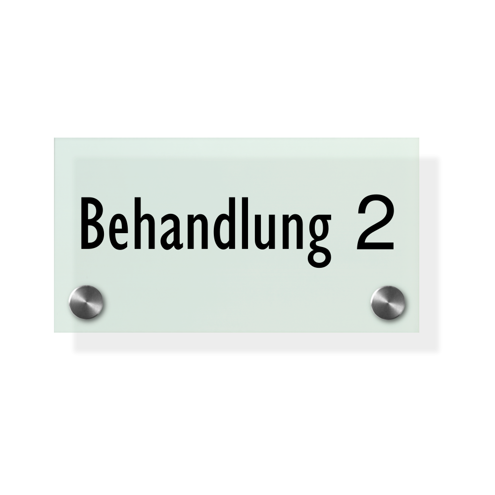 Innenschild Typ „Münster“ aus satiniertem und semitransparentem Plexiglas®. Die Schilder werden in einem Abstand zum Hintergrund montiert (ca. 2 cm). Für den passenden Abstand sorgen die beiden Abstandhalter automatisch. Die Abstandhalter sind im Preis inklusive und werden mit dem Schild mitgeliefert.