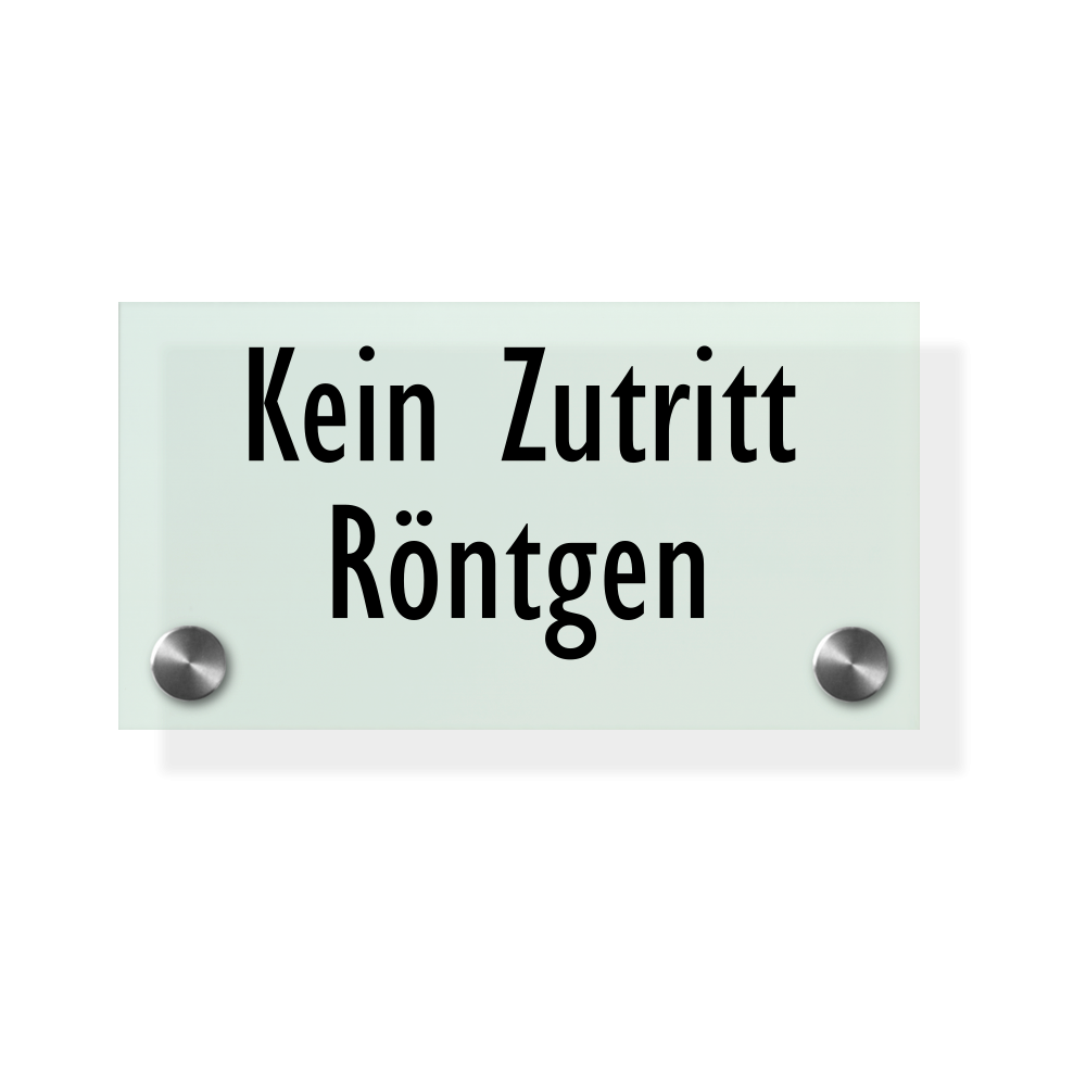 Innenschild Typ „Münster“ aus satiniertem und semitransparentem Plexiglas®. Die Schilder werden in einem Abstand zum Hintergrund montiert (ca. 2 cm). Für den passenden Abstand sorgen die beiden Abstandhalter automatisch. Die Abstandhalter sind im Preis inklusive und werden mit dem Schild mitgeliefert.