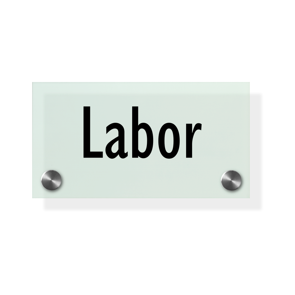 Innenschild Typ „Münster“ aus satiniertem und semitransparentem Plexiglas®. Die Schilder werden in einem Abstand zum Hintergrund montiert (ca. 2 cm). Für den passenden Abstand sorgen die beiden Abstandhalter automatisch. Die Abstandhalter sind im Preis inklusive und werden mit dem Schild mitgeliefert.